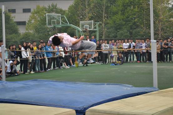 最后,来自高二(5)班的胡智超同学以1.55米的成绩获得的高二男子背跃式跳高的冠军。其实这个名字我们都不陌生,他同样是去年高一背跃式跳高的冠军。