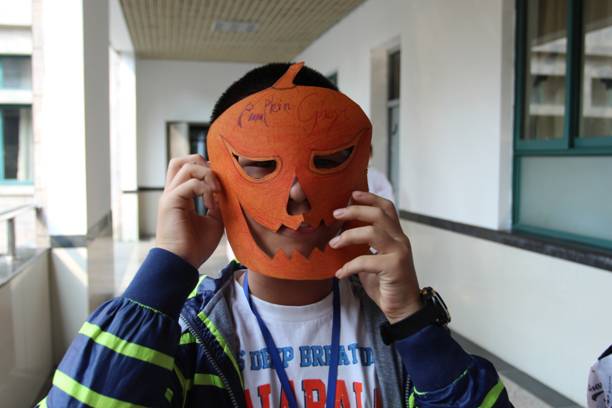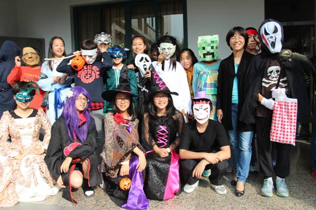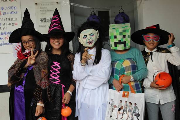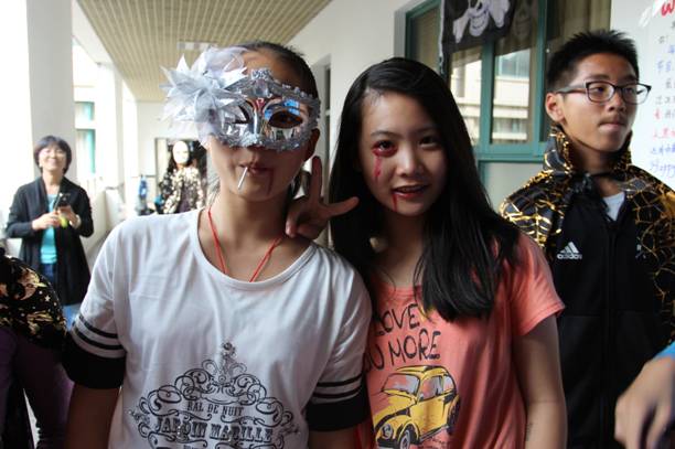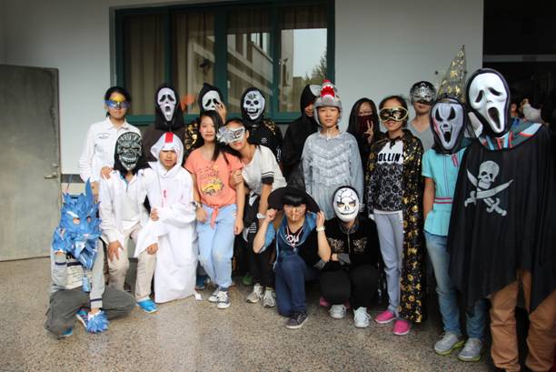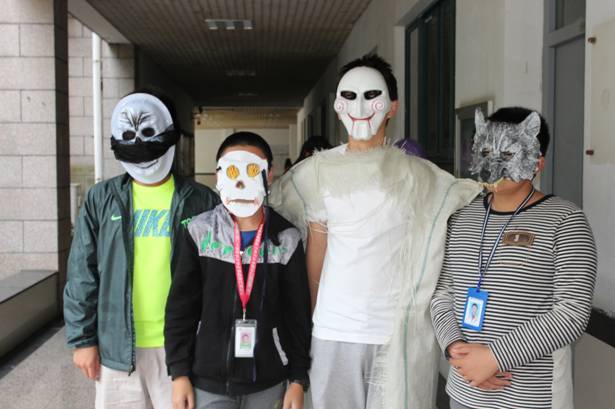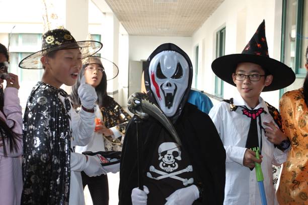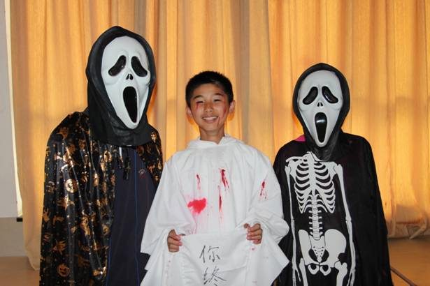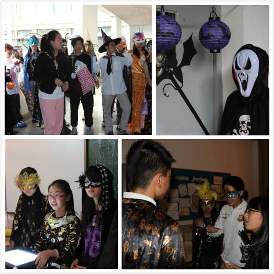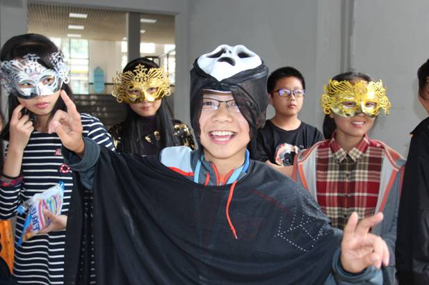 万圣节活动在周二下午如期举行。这两天的中午和课间,总能看见同学们在忙碌的布置教室、精心准备服装和面具。这次的万圣节庆祝活动好比一次隆重的英语节:学习万圣节的礼仪,练习万圣节的英语对话,各式各样的活动丰富了我们的英语学习,让我们更好地去接触与了解外国文化,去触碰蕴含深处的文化底蕴。面戴彩色的面具,身着五彩斑斓的服饰,品尝着甜甜的糖果,每个人都像在参加一个盛大的化妆舞会。这或许比在课堂内获得的死板的知识更加有用,有趣,有意义。设计、组织游戏的过程,还锻炼了我们的领导力和团队合作精神,整体提高了我们的素质。最后在这里再说一句:“Happy Halloween!”