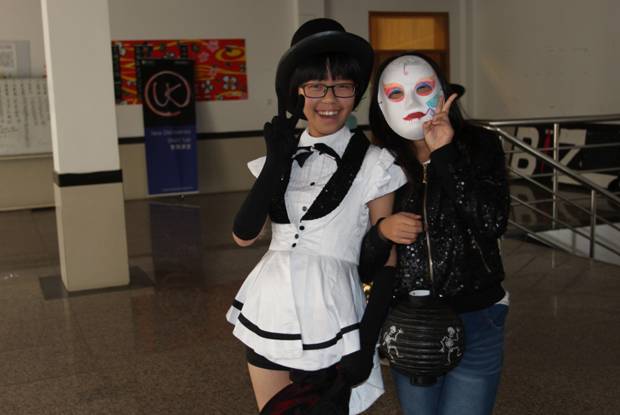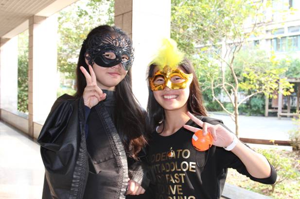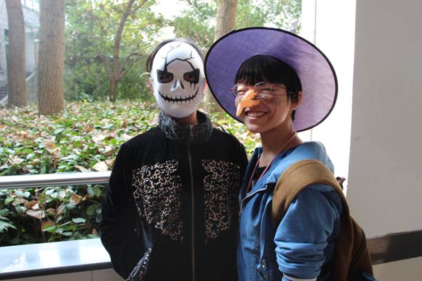 身着奇装异服的同学们,扮演各种鬼怪:什么幽灵,僵尸,吸血鬼,女巫的,到处“祸害”人间。妆容最华丽的要数一些女孩子们的cosplay装备了,不知吸引了多少老师和同学们的目光。