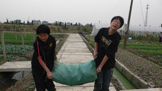 我们四个班聚在一块空地上,听沈岚老师来介绍农场情况。在杭外生活将近两个月了,我们却第一天知道,原来我们每天吃的蔬菜,都是这个农场里种出来的无公害有机蔬菜。大
