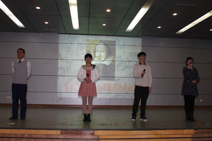 在主持人孙咪娜、钟傲然、傅雨佳、祁一帆同学的引领下,五位评委——杨文玫老师、黄昊老师、洪琳老师以及去年莎剧配音优秀表演者陈诗琦、朱清仪同学和全体现场观众一起踏上了这趟时光列车,前往文艺复兴时代的英格兰剧院,领略由高二年级同学用声音演绎的莎剧风采。