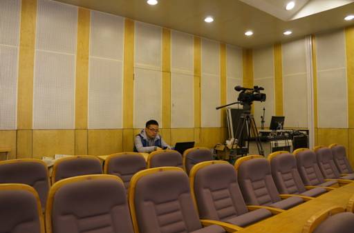 与此同时,本次活动的志愿者们也在忙碌着。检录处、赛场里,到处有他们穿着红色马甲的身影。评委席上,评委们仔细聆听着每一位选手的歌唱,力图为大赛挑选出最动人的声线。负责直播设备的老师坚守岗位,为同学们带来精彩的转播。