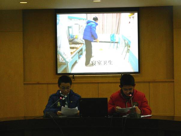 1月13日,杭外宿管部第八届和谐寝室评比之现场演讲会在1413会议室如期举行。校团委书记周华伟老师,学生处副主任林莉老师,宿管部老师,部分生活老师代表及学生会代表参加了演讲会。