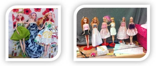 (这是我们在基础款上自己发挥设计的芭比裙装。)