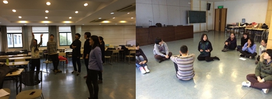刚开始听说这个英语戏剧的Workshop,第一反应就是可能每天都是讲一些睡倒一大片人的讲座和会让人脚软嗓子疼的发声练习。但是,真正去参加以后,发现事实不是这样的。这五天的时间过的特别开心、充实。Selena老师很耐心,会在课余的时间进行单人的辅导。如果没有Yang的口琴和口风琴伴奏,五天的恐怕也会少掉不少乐趣。 我们简单的学习了一下戏剧的种类和发展,稍微了解了一下莎翁,其余的时间一直都是在“发疯”。不断地练习用各种姿势、扮演不同的人和物走路,重温了一本正经说着自己自创语言的童年回忆而且是和Partner对话,以及临场发挥的表演,都是我以前很少,或是从来没有体验过的。