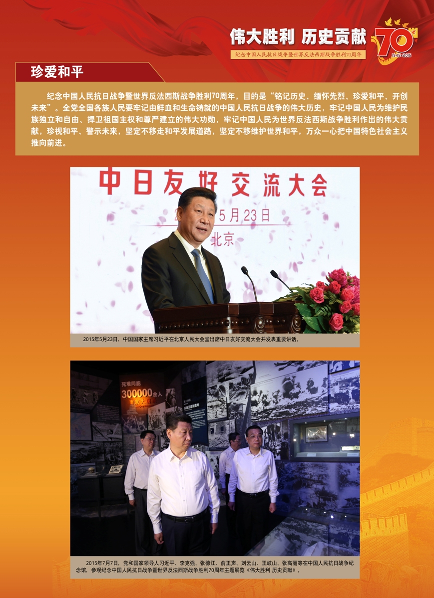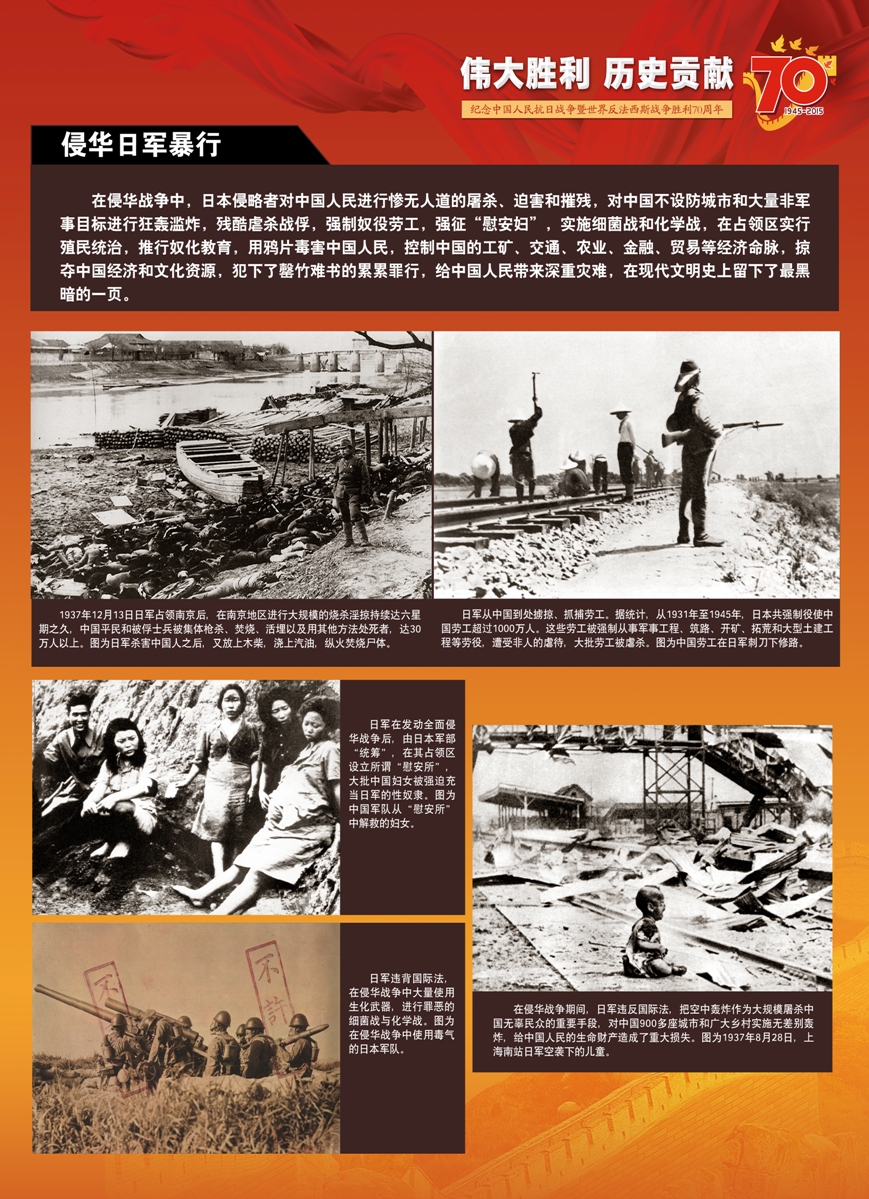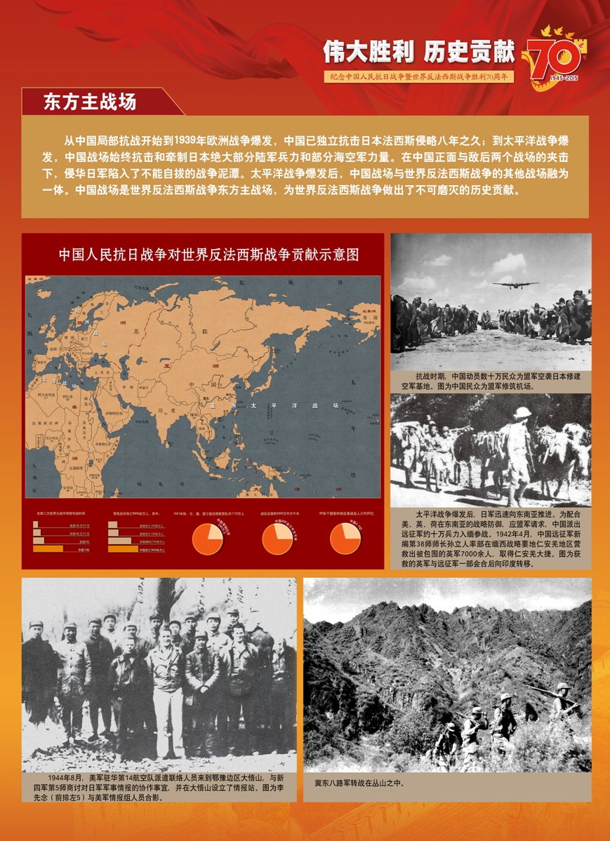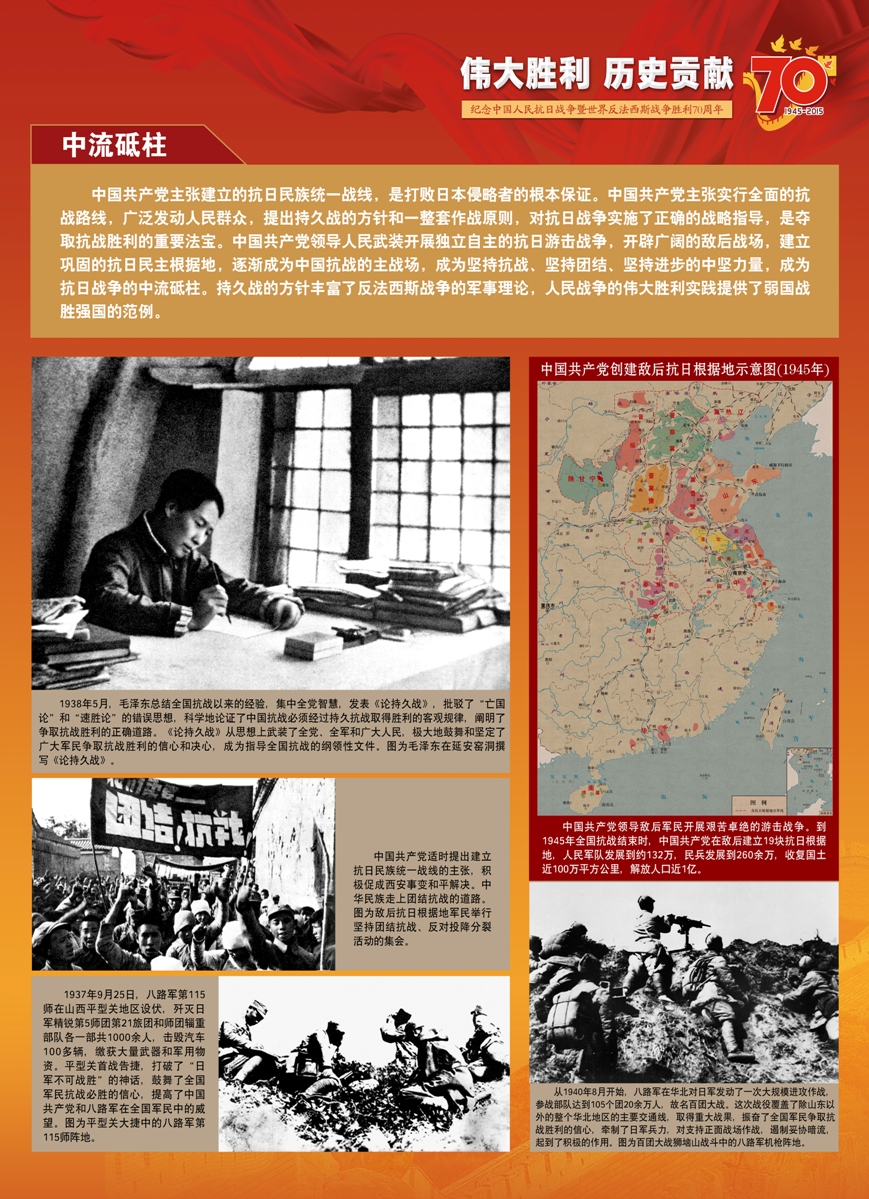 为营造纪念抗战胜利70周年浓厚社会氛围,中宣部宣教局会同中国人民战争纪念馆,以“伟大胜利 历史贡献”主题展览为基础,精选图片制作了纪念抗战胜利70周年宣传挂图。