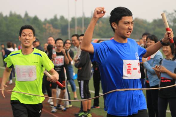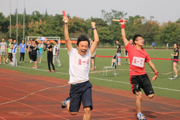 Q:那么祝你们明年也能有出色的发挥。也祝下午的4*100m你们班也会有精彩表现。