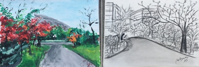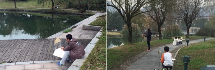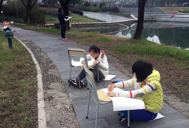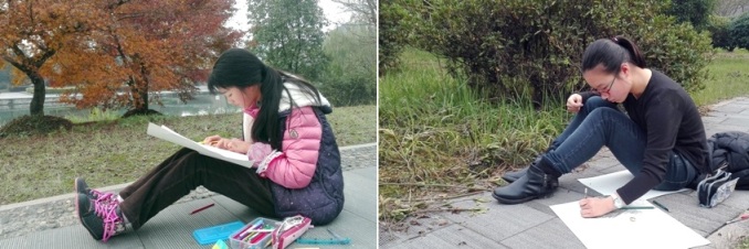 12月1日,“校园风景”现场写生作品大赛拉开了我校第19届艺术节的序幕。傍晚时分,天公作美,同学们带着纸笔,奔赴校园的每一个角落,面对自己心仪的景致,仔细观察,认真作画。