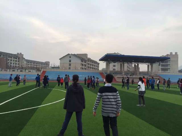 3月17日下午(周四)的拓展课上,初三(1)到(6)班的所有同学都聚集在操场上,所有人的脸上都洋溢着期待的笑容。早在两天前的晚自习,各班班长就已经将本学期的第一次户外拓展课的方案告诉了大家。这次拓展活动是桌上足球的扩大版,也就是以深浅两区划分成不同的队伍,而足球则用瑜伽球代替。双方将瑜伽球扔进对方的球门一次就积一分。根据抽签,队伍的分配也出了结果:一班、二班、三班为第一联队,代表的是浅色区,四班、五班、六班为第二联队,代表了深色区。每支队伍似乎都在安排战术:男生负责投球,女生负责接球,很快,在各班分别按照计划就位之后,主持人就开始倒计时比赛开始的时间了。