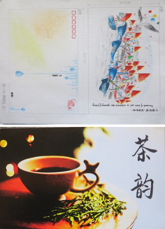 二班俞锦霖组所展示的竹文化更加有趣。向我们介绍了竹的种类,与竹相关的故事,安吉竹乡的悠悠竹韵。说实话,很多种类的竹我之前都不知道如何辨认,听完后真是长见识了。四班的傅可组带来湖笔文化。两位女生的声音都很干净透亮,在一片安静中说着优美的开场白,直接就将人带进了她们所展示的主题中。最后的“小惊喜”——她们自己设计的明信片也的确十分可爱,充分体现活动主题的“走读”价值。最后一组是三班李叶萱为我们展示的河姆渡文化。在古风的背景音乐伴奏下,她把长江流域的古中华文明及它的建筑特色向我们娓娓道来。