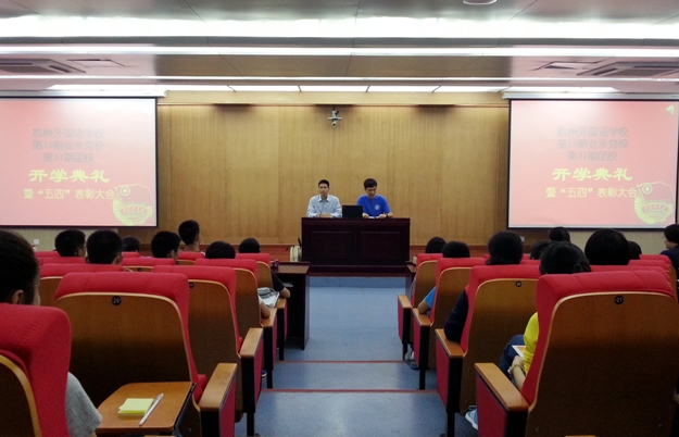 5月12日晚,我校举行第19期学生业余党校、第31期学生团校开学典礼暨“五四”表彰大会。党委书记徐继彬,党委副书记、纪委书记唐玉娣出席活动,团委总干事童云波主持活动,初、高中团总支干事曹莉、洪梅及本期党校团校学员和优秀学生代表们共同参加了本次活动。