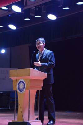 更精彩的部分必然是选手们演讲的环节。他们从不同的角度,为我们诠释了“Schooling and I”的主题。在他们从容、大气的演讲中,我们看到了同学们对学校教育的不同观点,看到了校园生活带给同学们不一样的人生体验,也看到了同学们对教育、对学校所抱有的期盼和祝福。在现场答问环节,选手们同样表现得睿智、灵动,赢得了评委和观众的一致好评。最终,许央、陈吉米同学分别荣膺女生组、男生组桂冠。
