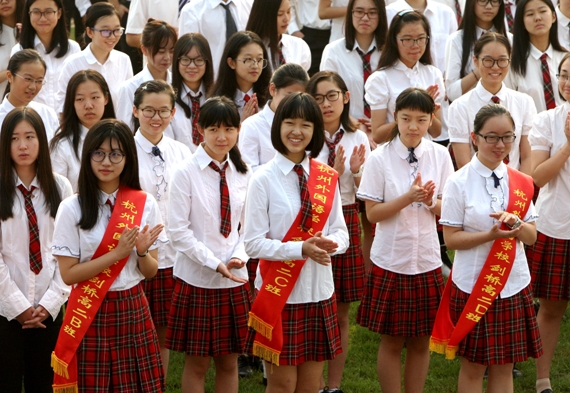 9月9日上午,我校举行2016学年第一学期开学典礼暨升旗仪式。学校党政领导班子成员,校长方健文,党委书记徐继彬,副校长夏谷鸣、楼林军、吴锋刃,党委副书记、纪委书记唐玉娣,以及剑桥高中学术校长Mathew Thomas出席仪式,并与新同学正式见面。仪式由团委副书记童云波主持,全体师生员工参加仪式。