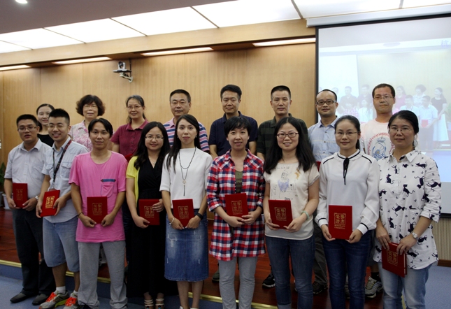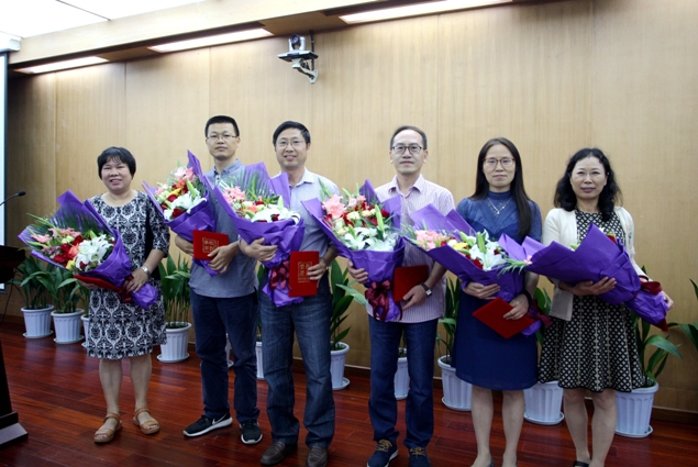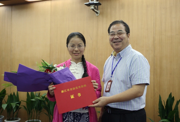 (方健文校长向获评省级优秀教师暨省中小学师德楷模的教师转授证书)