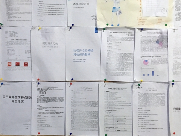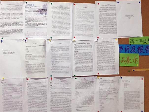 人们阅读,是为认识自我;人们行走,是为探索世界。若无阅读,亦无行走,那么人活着便不能称作是活着,而仅仅是生存。高二年级的全体同学在暑假里,以自己的行动为阅读与行走的意义做出了最为充分的证明。 在近两个月的假期中,每位同学都被要求阅读一个序列中的若干部文学作品,并撰写专题书评;同时,同学们还需要以个人或小组为单位,针对某一社会现象或时事热点进行专题研究,并上交研究报告。九月中下旬,在高二语文组老师的组织下,各班分别进行了这两项作业的交流、展示及评选,入选的近40份优秀作品随即在年级展板上公开展览。 展板之上的纸页纷飞间,我们或许仍能窥见当日照亮书页的阳光,从泰戈尔的诗化语言、海明威的硬汉文学、雷蒙德·卡佛的极简主义到俄罗斯文学中的“多余人”形象、“反乌托邦”小说、中国传统戏剧与莎士比亚戏剧比较等等,仿佛又回到夏日的空调房内听见键盘敲响,于是部部名家著作构建起系统的框架网络,思考和感悟具象为纸上段落与字行;又或者它们记录下的是烈日里一段段前行的路程,我们携带问卷走过书店、商场或是地铁站,从旁人的声音里探索社会的真实,用客观的数据和文本书写心中的回答。从G20、里约奥运会到高考改革,我们的思维跨越各个领域,关注社会,关心世界。我们深入人类的精神空间,去探究性别歧视与女权运动的发展态势,去追问现代人的心理健康问题,去研究媒体舆论与人们价值观之间的双向影响。它们说,以暑假为期,我们阅读,或是行走。它们说,以生命为期,人们阅读,或是行走。 我想,人们总是不缺乏思考的能力的。思考从何而生?无非阅读与行走;思考如何丈量?亦无非阅读与行走。展板上那些具象化的、纸页形的思绪仍猎猎飘舞如同风中旌旗,它们告诉这个世界,在这里有一些最终安静、最终沉淀下来的东西,比如书页,比如脚步。 高二(2)班 吴恺婷 撰稿