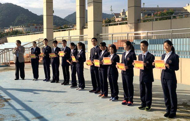 10月10日上午升旗仪式,我校对荣获2015学年高一、高二优秀学生奖学金的同学进行了表彰。校长方健文向获得一等奖学金的同学颁发奖状。高三1班于赟皓同学代表奖学金获得者发言。