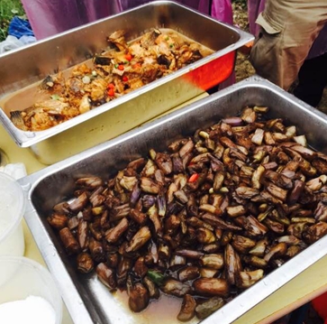 天还是由阴转雨,诚心给下午的炊作设下难关。没有大厨掌勺的我们除了茫然,还有焦灼。没有清洗就在腌制的鱼肉,切了一半,也氧化了一半的茄子;鱼腥侵入南瓜块的困境;当然,最主要的还是不断落入石锅的雨水。或许是一种傲气,一种苦中作乐的趣意,让我们一遍遍克服——重洗鱼肉,南瓜;重切茄子;在藤蔓上架雨伞……