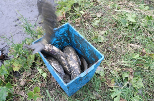 经过简单的冲洗,五班的同学们又向着鱼塘的方向前进。鱼塘不大,水里依稀看得见鱼游动的影子。男生们撸起裤管,奋不顾身接二连三的往水里跳,鱼塘不深,但也到1米的样子。一进到鱼塘,大家就和打了鸡血一样,奋力地扑向身边的鱼,收获颇丰。
