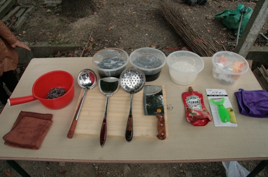 炊事班的用具。初次上任的小厨师们也拥有着职业水准。也正是炊事班的劳动让忙活了一天的大家有了饭吃。