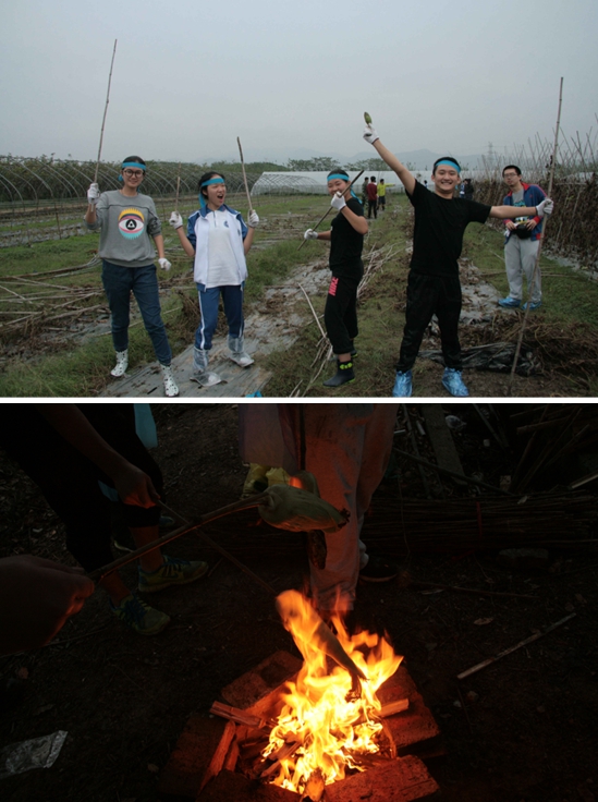 一袋袋番薯被运回班级据点,炊事组的同学马上接过手进行清洗,开始为辛勤劳动的同学们准备烤番薯。
