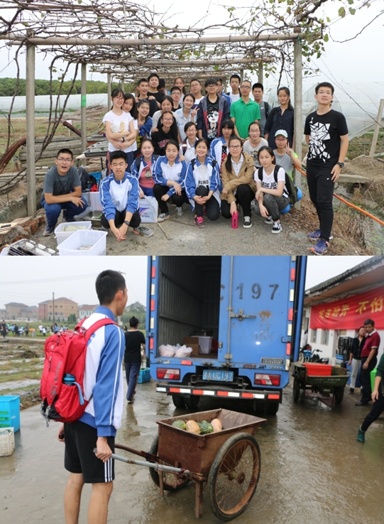 今天是学农的第二天,经过昨天一天的劳作,大家的兴奋劲都收敛了许多。出校门的时候天气有点阴,一路上大家也都很安静,很快就到了目的地。