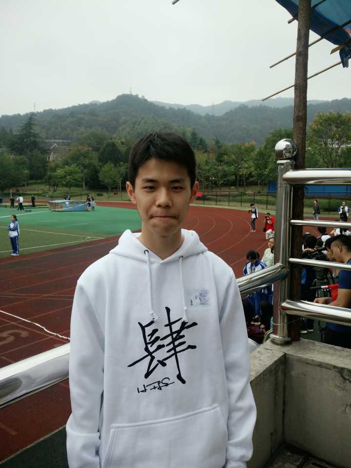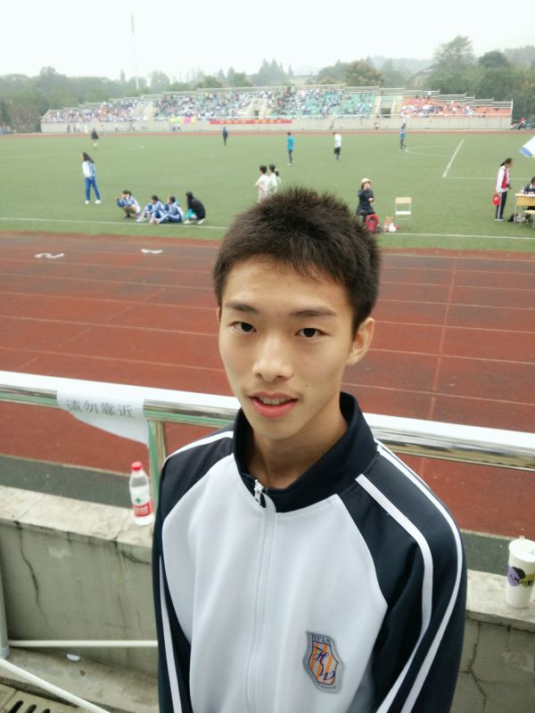 作为高一6班的体育委员,不论是督促大家训练,还是赛前指导,全心浩同学都非常尽心尽责,六班的运动员们受到了莫大的帮助。他参加了高一男子1500米比赛,获得了第四名。