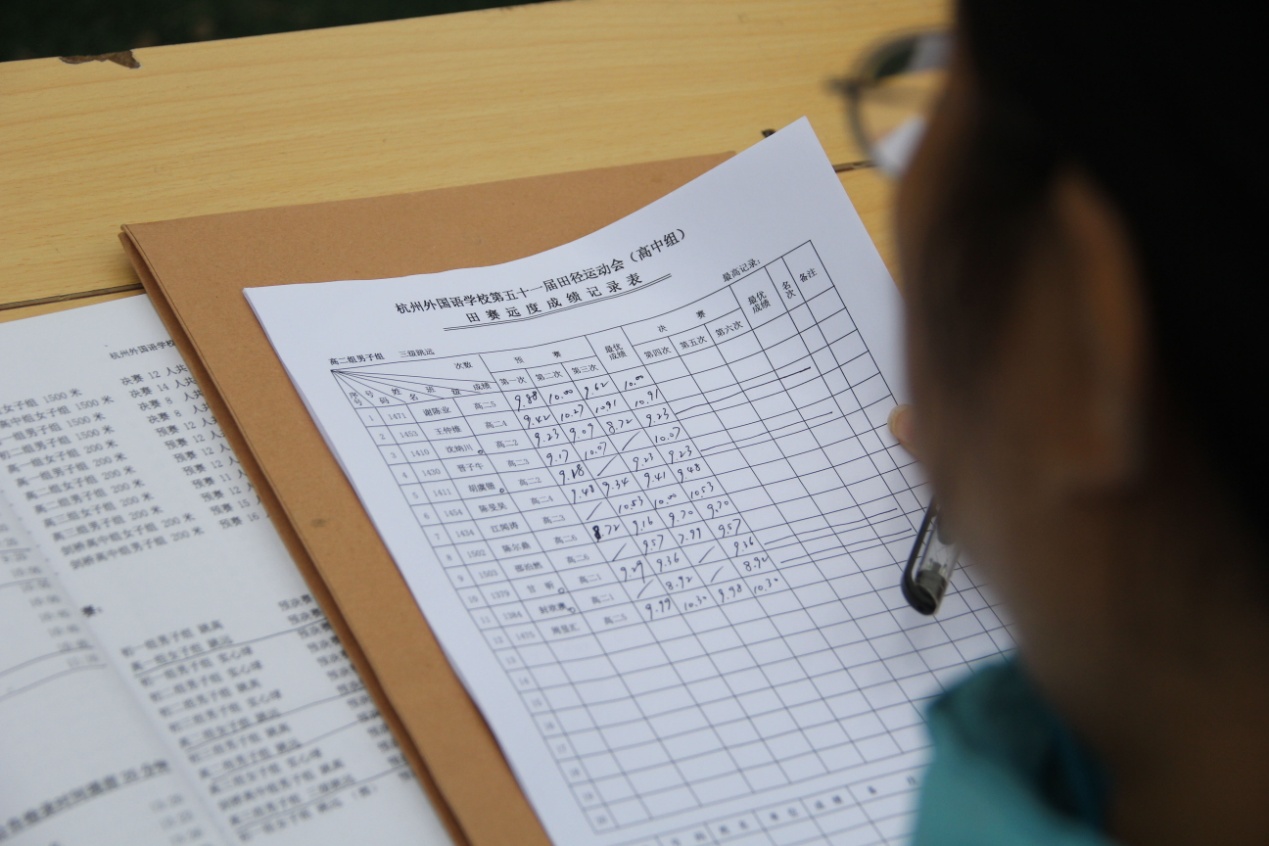 裁判是个很辛苦的工作。运动员收获着来自同学们的慰问和掌声,而背后的裁判员们,却用着他们的细致和耐心,马不停蹄地记录着运动员的辉煌。