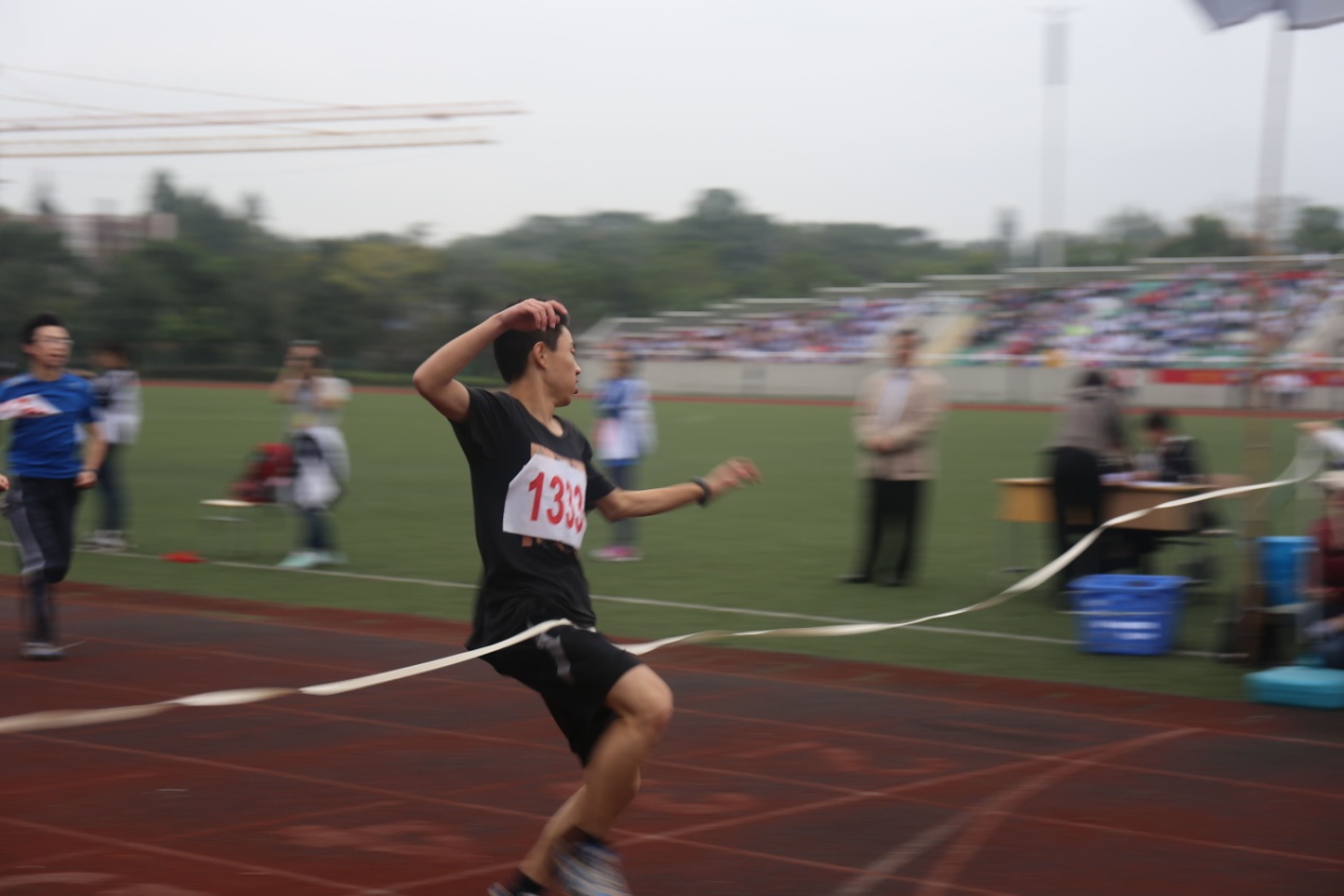 来自高二1班的陈佳珅在众人的期待下夺得了高二男子1500米的冠军。