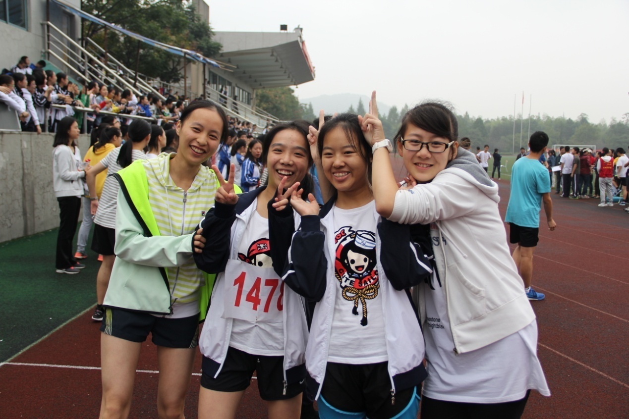 26日下午,天气突然由阴转晴,太阳散发出不同于前几日的光芒。而运动会最后一天的赛程中,各位运动员们也释放出无与伦比的力量。在下午高三女子4x100米接力中,高三1班的四位姑娘获得了冠军的好成绩。她们分别是王雨飞、方文菁、丛方妮和钟婧华。