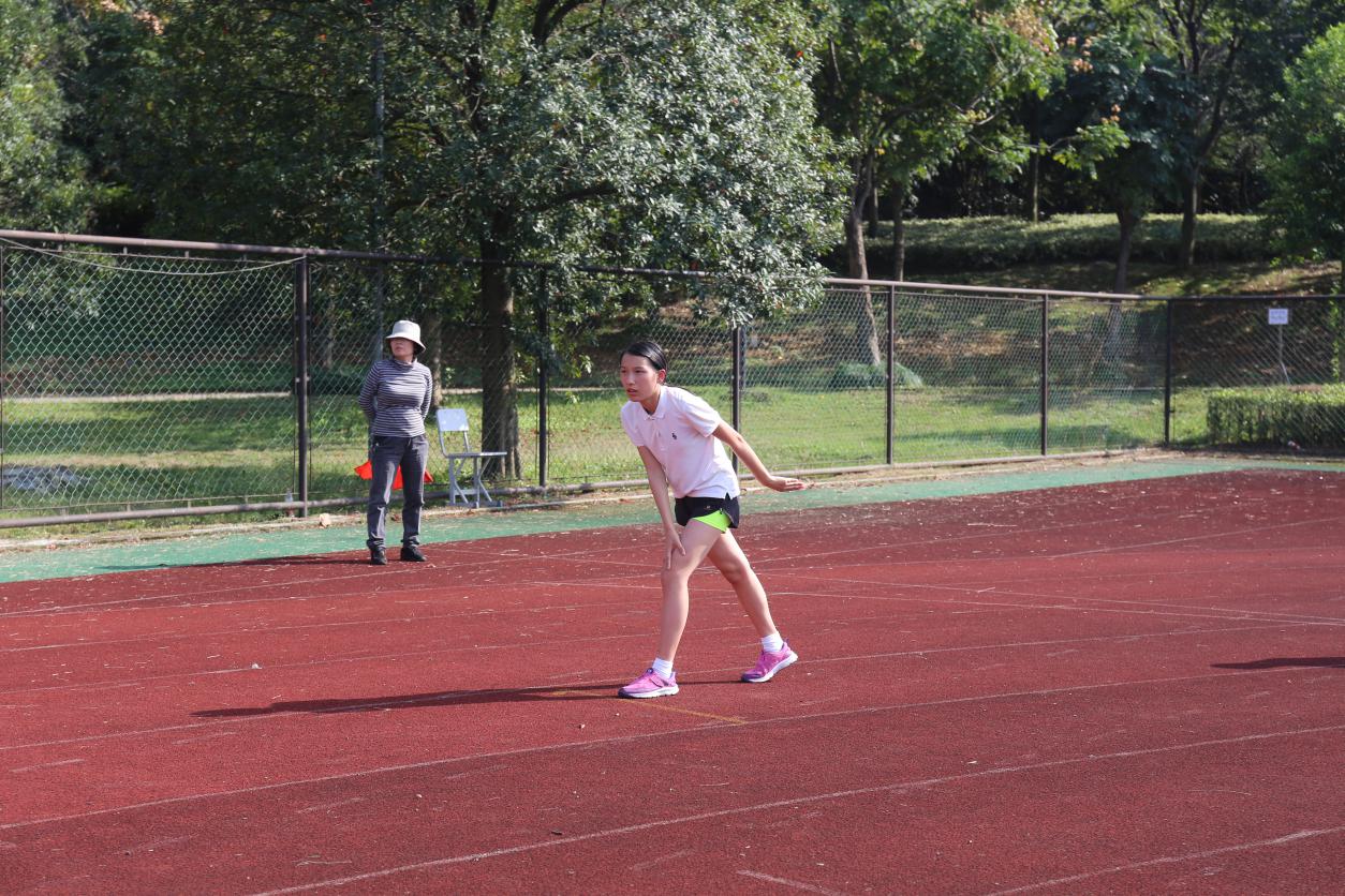 A:我觉得还挺惊讶的吧,因为跟我同组的有一个同学非常的强,去年运动会她比我快出很多。还有一位同学她去年说脚不好,但跑得时候只比我慢一点点。所以我还是很慌的,这次第一真得很惊讶。