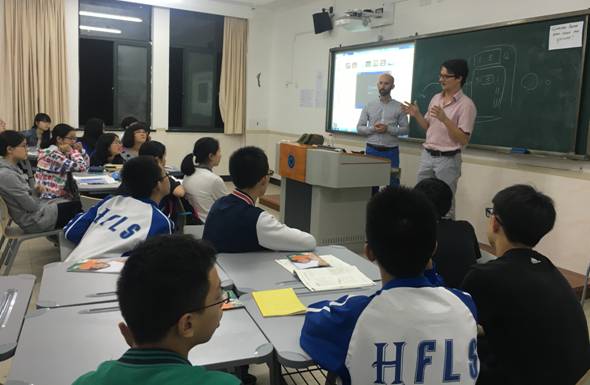 来自德国弗莱堡商学院的教授Dr. Hans-Jörg L. Weber以一段段精彩的视频向我们展现了德国的风景和德国学生的风貌,并以一些小互动拉近了与我们的距离(尽管一开始大段的德语让我们摸不着头脑)。其实身为初中生的我们对于德国教育体系所知甚少,这次讲座让我们第一次了解到了德国大学与中国大学的不同。老师告诉我们,在德国的大学,往往是上3个月课,放3个月假,功课比较轻松,自由的时间很多,但是要想做出成果来,必定需要对自己的时间有一个良好的规划,要有很强的自主学习和探究能力,可以在节日里狂欢,也要能在研究室里不懈钻研。