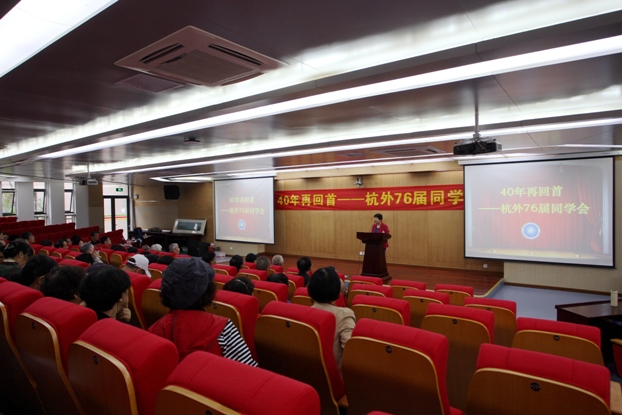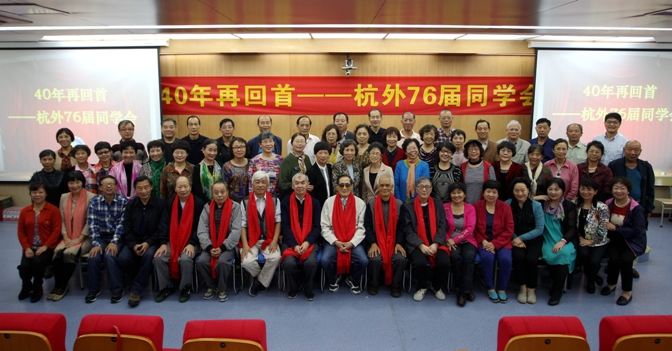 10月21日上午,在毕业40周年之际,我校1976届近60名校友回校相聚,并召开了以“40年再回首”为主题的同学会。沈昌华、张润秀、毛颂唐等多名当年任教该届的老教师受邀与会。