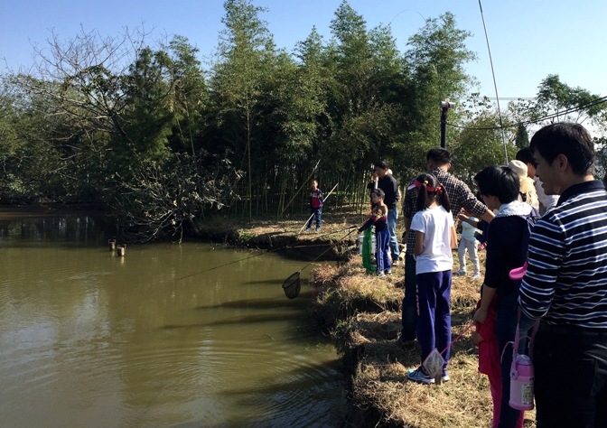 首先进行的是钓鱼活动,男老师们一边熟练地操作着专业的渔具,一边向一旁的孩子们传授钓鱼技巧。刚下钩,便钓上一条大草鱼,为我们此次亲子活动开了个好头。每当有鱼上钩时,在场的老师和孩子们都会发出欣喜的欢呼,一来是赞叹钓鱼者的高超技术,二来也是为了午餐时能吃上鲜美的鱼肉而感到兴奋不已。