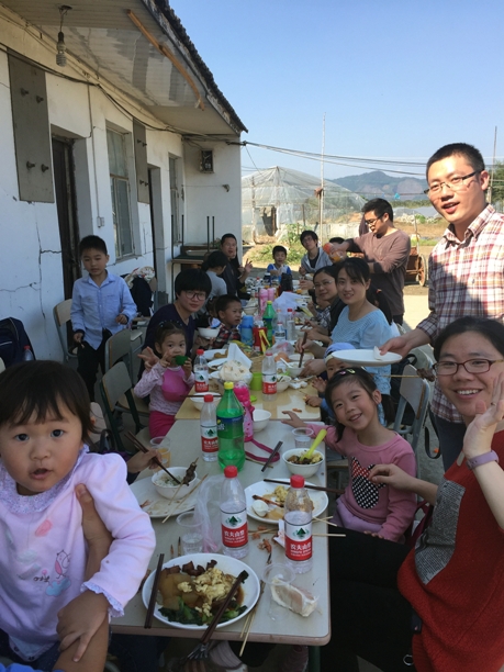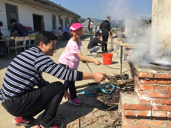 一个上午很快就过去了,大家带着劳动成果回到农场营地,开始用这些最新鲜、健康的食材,在土灶上烹制午餐。男老师们掌勺作大厨,女老师们洗菜切菜作助理。终于,在耐心的等待之后,美味的红烧肉、炒青菜、红烧冬瓜、红烧鱼块,还有鲜美的鱼汤被盛到了餐桌上。大家享用着自己的劳动成果,感到无比的满足和幸福。