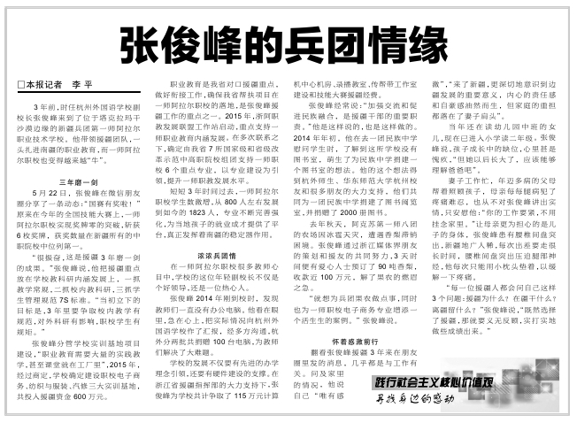 张俊峰的兵团情缘——浙江教育报关注我校援疆干部事迹