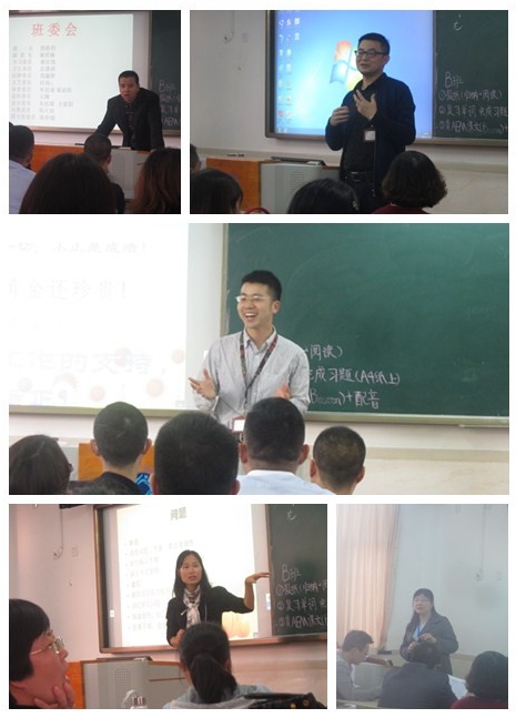 首先上台的是英语老师王文博。她先从学习品质、学习习惯及学习基础这三方面总结了学生的总体情况。她说道,初一看重的是学生的模仿能力、语音语调、表达欲望和合作态度。上课要专注听讲、认真做好笔记、纠错等工作,同时还要对自己的学习和时间做好管理计划。之后她对半学期来的作业和测试作了综合性的评价。