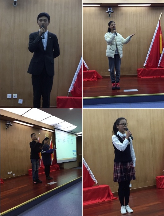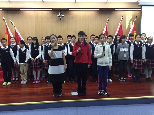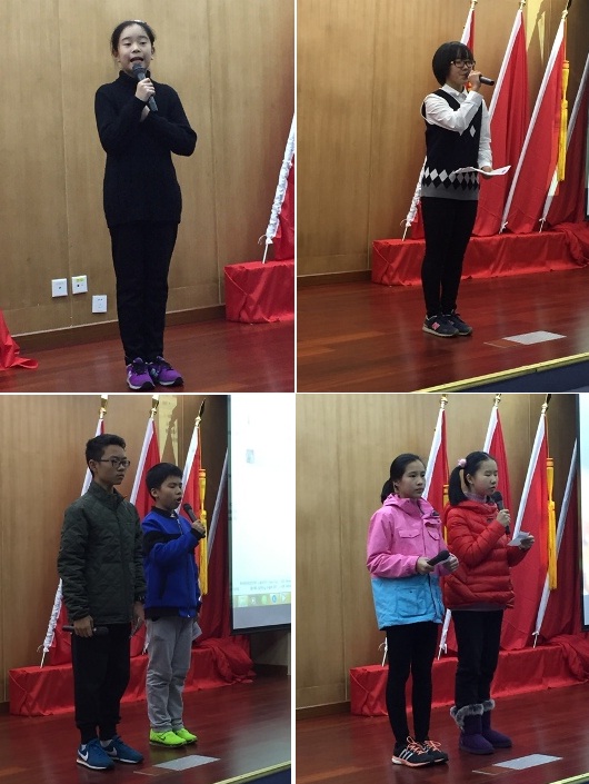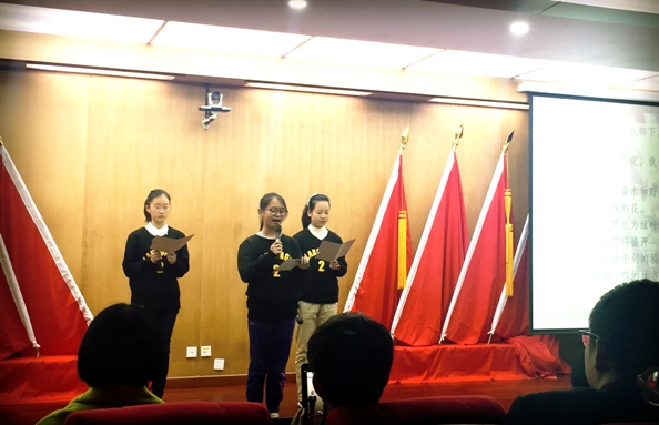 报告厅的灯忽然暗下,似乎在为一场大戏的开场做着铺垫。在这个初冬的夜晚,初一年级诗歌朗诵比赛拉开序幕。整个年级一共有十二组同学上台朗诵。