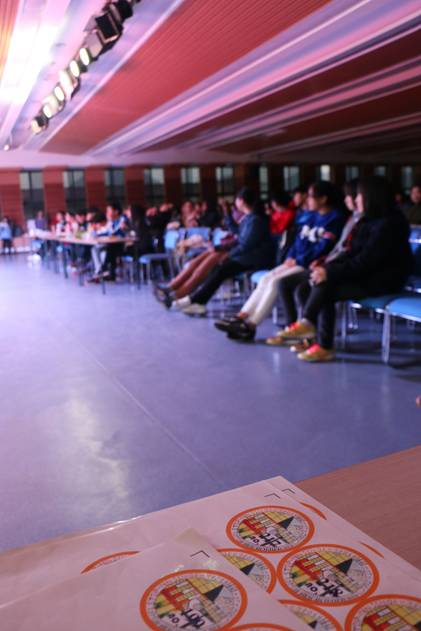 比赛前,选手们在积极地准备之后的表演,不少同学也陆续来到现场观看比赛,并给选手们加油鼓劲,现场的气氛紧张兴奋又暖洋洋。本次比赛在网络上也会同步直播,同学们也可以在教室通过电脑观看。