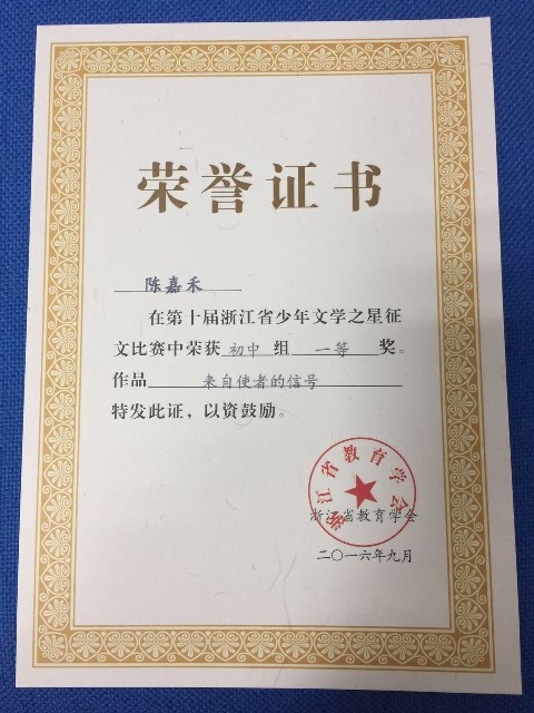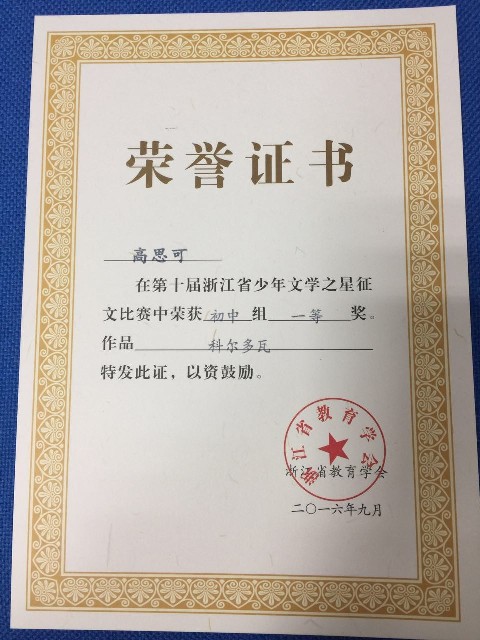 今春启动的第十届浙江省文学之星征文比赛在历时半年的海选、初审、复赛后,于12月11日在浙江外国语学院报告厅落下帷幕。我校同学在本届比赛中表现积极,收获颇丰。高中部的钟傲然、吴玫、陆佳雨、范木子、虞璧祯和初中部的陈紫彤、陈飞宇、陈嘉禾、周丹、高思可、徐苗露、徐妍等共十二位同学获得本届赛事一等奖,另有十四位同学分获大赛二、三等奖及优胜奖,我校也荣获本次大赛组织奖。