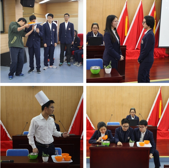 中法班同学们为来访老师、高二同学及同学家长献上了课本剧《生日快乐(Joyeuxanniversaire)》和自编自导的舞台剧《顾客就是上帝(Le client estroi)》。