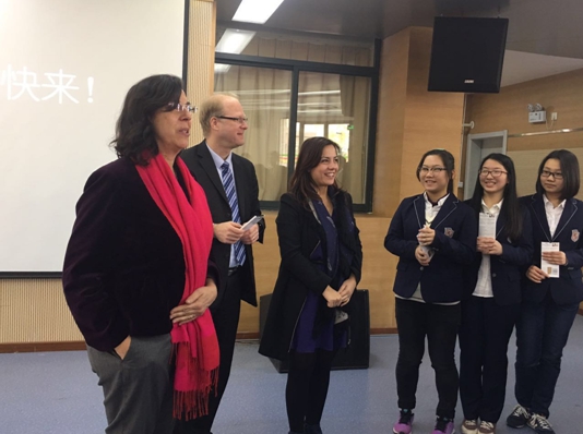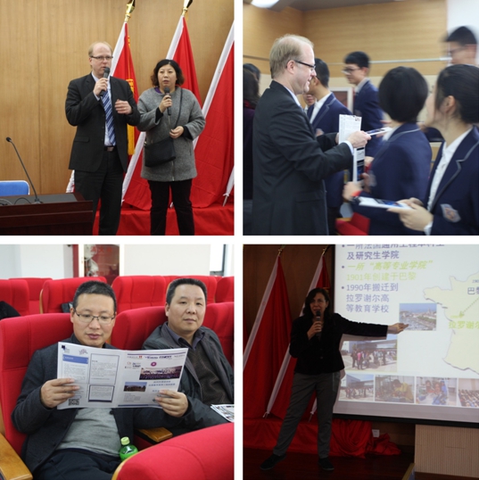 2016年12月12日,法国鲁昂高等工程师学校联盟再次来访。ESIGELEC(法国鲁昂高等工程师大学)副校长Cyril MARTEAUX、EIGSI(法国拉罗谢尔工程师大学)国际处负责人Cecile SOLDATI、ECAM Lyon国际处负责人Gessica PAPAROZZI 以及办事处负责人刘颖老师莅临我校。来宾此行旨在观摩高三中法班同学的舞台剧表演,了解学生发展情况,并向部分高二年级同学及家长详细介绍了4所联盟大学的情况。