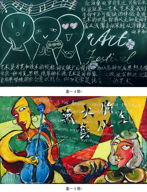 一年一度的艺术节已经拉开帷幕,初高中和剑高各班级精心准备了班级板报,来迎接这场艺术盛宴。各班板报设计紧扣本届艺术节主题——“薪火承,艺从生”精心设计,既体现同学们对艺术节的热爱与期盼,也展示了同学们良好的艺术素养和审美水平。