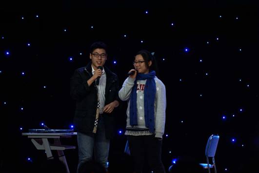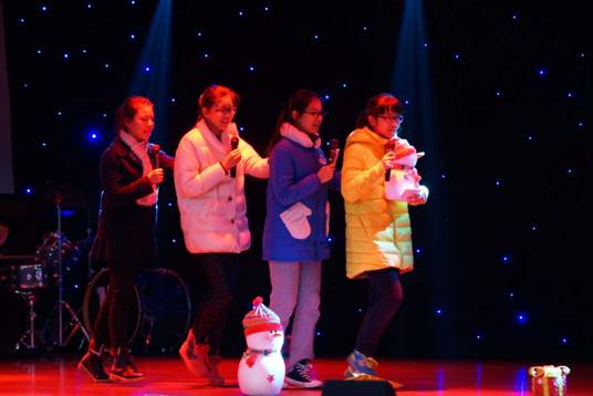 在简短的开场白之后,初二的同学首先为大家带来了诗歌朗诵《当你老了》。抒情流利的朗诵配上精美的PPT,着实让人为之惊叹。紧接着是歌曲表演《Joyeux Noël》,同学们伴随着轻快的音乐,配合上优美的动作和仿若天籁般的嗓音,让在场的各位沉浸其中。