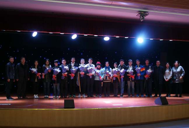 在中法班的节目结束后,校领导送上精心准备的百合花恭喜大家的成功演出,并且表达了对大家未来的美好展望和殷切期盼。