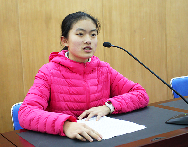 接着,来自初三的陈响同学将自己的学习经验作了总结、分享。陈响学姐的经验介绍内容丰富,不仅有错题总结的方法与提升英语水平的技巧,还有各学科的学习方法,使我们认识到现阶段学习对未来发展的重要性。