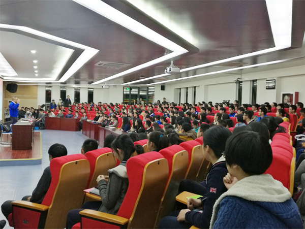 3月26日晚,2号楼一楼报告厅,人声鼎沸,座无虚席。浙江经视著名新闻评论员舒中胜老师莅临讲学。同学们早早的来到这里等候,时不时与邻座的同学耳语几句。紧张,期待,雀跃,激动,充斥着报告厅内的每个角落。