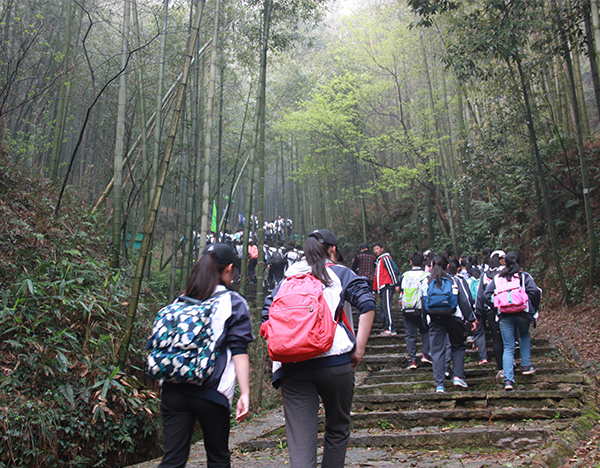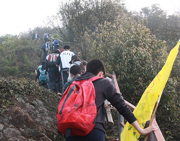 A:路线选的很好,特别喜欢没有台阶只有绳子可以抓的那段山路,更有爬山的感觉。因为下过雨路滑,还有些已经松动的石块,有人差点滑倒,旁边同学马上会扶,往后传话提醒大家小心那个地方,感觉特别暖心。