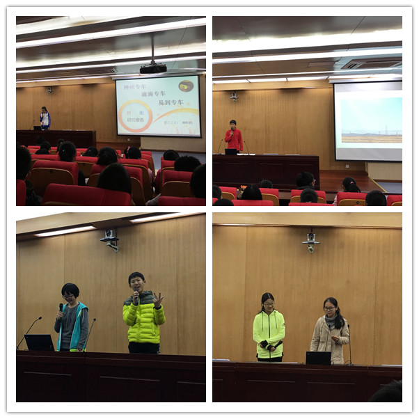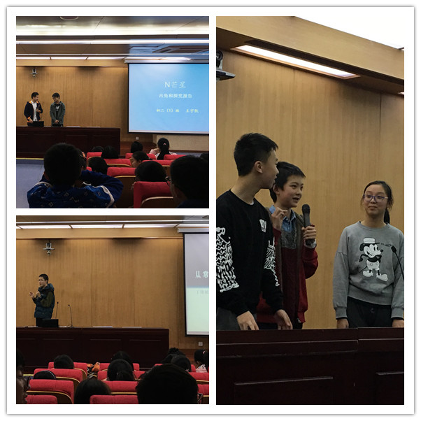 初二(2)班蒋昕昀同学首先带来了《关于神州专车、滴滴专车、易到专车的对比》的研究报告,这个分享利用数学函数和几何画板给我们的智慧出行提供了许多招数。同学们似乎对打车这个话题特别感兴趣。紧接着,初二(3)班华子凡、吕俊同学又为我们带来了《出租车计费方式的报告》。这两个关于打车的报告让同学们脑洞大开。初二(2)班余承洲带来的《各行各业电价研究》给了同学们许多节约用电的小贴士。初二(1)班的王宇凯、郑之钰的报告是《n芒星的研究》。这个标题一出现就马上引起了大家的关注,芒星是什么?芒星是由若干等腰三角形和一个正多边形组成的几何图形,举个例子,五角星就是生活中最常见的一种芒星。芒星还跟各种宗教、美学观念以及中世纪的炼金术有关,这个报告可是个扫盲报告,为我们剖析了芒星这种简单图形背后的数学奥秘。网红游戏阴阳师手游最近可谓是大红大紫,初二(3)班的俞佳琪、李宇晨同学和初二(1)班的江止善、谢瑞同学分别从不同的角度和我们分享了《阴阳师手游研究》。听完这两组报告,我们都想入手这款号称完美的游戏了呢!初二(4)班杨竞、陈孟原、张稼欣、施润喆、江南带来的《关于刷题和理科考试得分的关系调查研究》可谓是与时俱进的热门话题。本次报告会在初二(4)班丁徐祉晗的报告——《常温下室内物体温度变化的函数规律》中接近尾声。