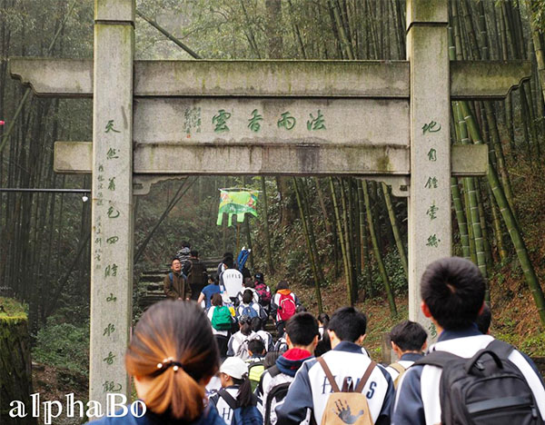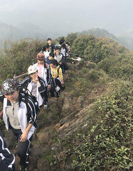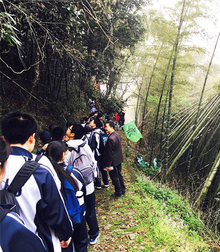 路途中,同学们得到最大的收获是团结和坚持的重要性。去时露水未消,山路湿滑颇不好走,破碎的石板总使人跌跤闪腰,在有些险要处一不留神便有滑落山间的危险。尽管攀登伴随着摔跤的疼痛,有的同学却化苦为乐——“攀比”总共摔倒几次,摔得少的是平衡能力超群,摔得多的是不虚此行。有几位同学身体不适,大家都主动停下等候,搀扶照料。他们也从未放弃过攀登,纵使体力不支,他们也坚持在同学的帮助下走完了全程。当然,“苦”中也有乐,山间空气清新,溪水潺潺,处处是绿树翠竹,秀美宁静,使我们这群小和山下的“山民”从一个世外桃源到了另一处“世外山林”。
