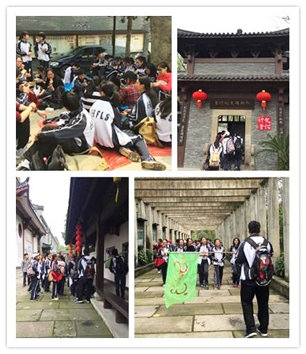 到达目的地后,大伙的热情又复战胜疲倦。新、旧建筑风格的纪念馆、园艺店和茶文化讲堂中都有同学们的身影,1班同学更是组织起了九连环比赛,近午的阳光映在同学们专注的脸上,分外好看。用餐时分,三两友人漫步于巷道间猎奇,也有同学领了食堂叔叔阿姨精心准备的饭菜,枕着树荫享受美味。阳光淡去了一上午爬山沾染的湿气,一片暖意融融。